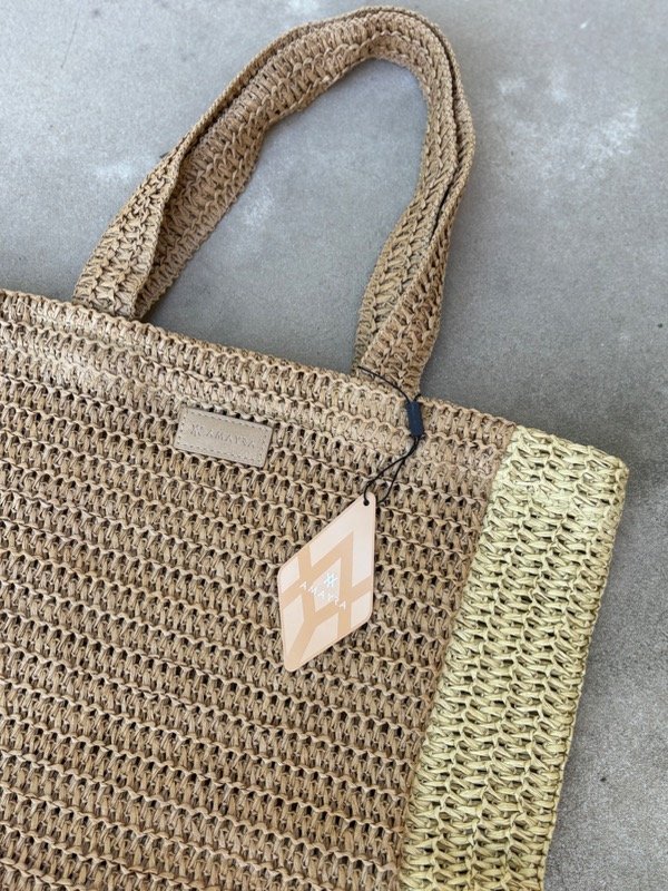Bolso rústico con diseño. Interior con bolsillo. Colores disponibles: visón y beige. Medidas aproximadas:37x34x15cm